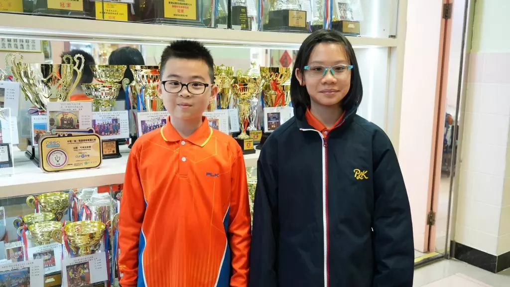 保良局田家炳小學2年級學生孔碧琦(右)與林奕陶(左)。巴士的報記者攝