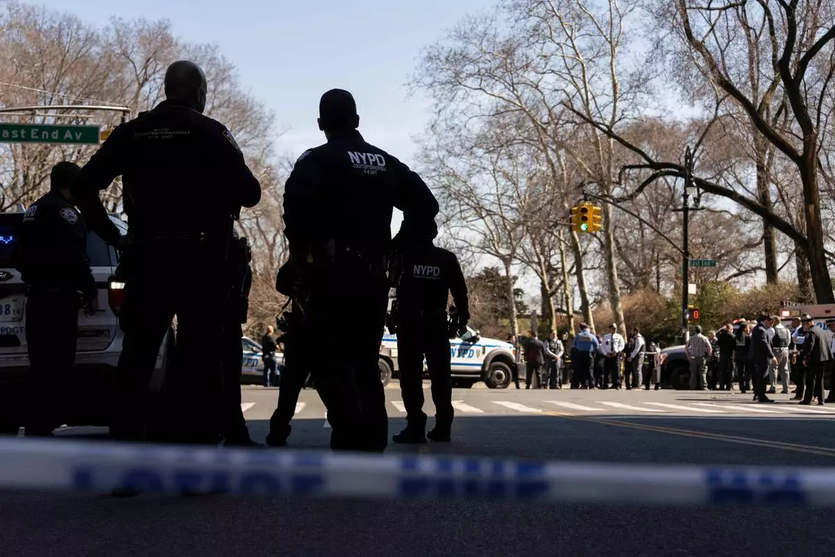 紐約市警察周二,2026年3月10日在卡爾舒茨公園外調查可疑裝置。 AP圖片