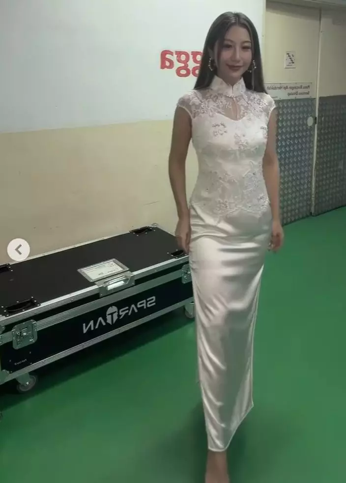 憑《中年好聲音》人氣急升的支嚳儀,近日獲邀到馬來西亞雲頂登台獻唱,不僅展現歌喉,更以兩套中西合璧的高訂旗袍成為全場焦點。其中白色與深藍色長裙屬定制系列,貼身剪裁完美勾勒其身體曲線,獲網民狂讚「索爆」、「身形好Fit」、「靚爆鏡」!