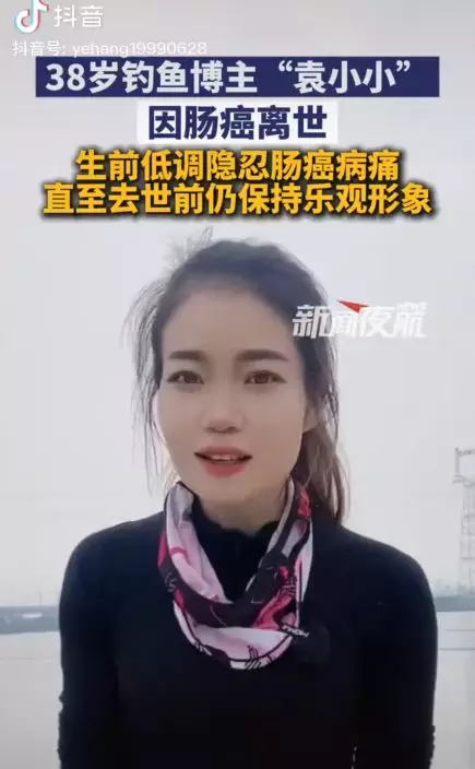 綜合內媒報導,內地一名38歲知名釣魚網紅袁小小(本名袁小娟)以分享釣魚影片聞名,因性格開朗且笑容親切,深受網民喜愛。10月22日,她的社交帳號突然發布訃聞影片寫道:「再見,親愛的小小。在另一個沒有病痛的世界裡,願你是最快樂的天使。」消息一出,震驚大批粉絲。