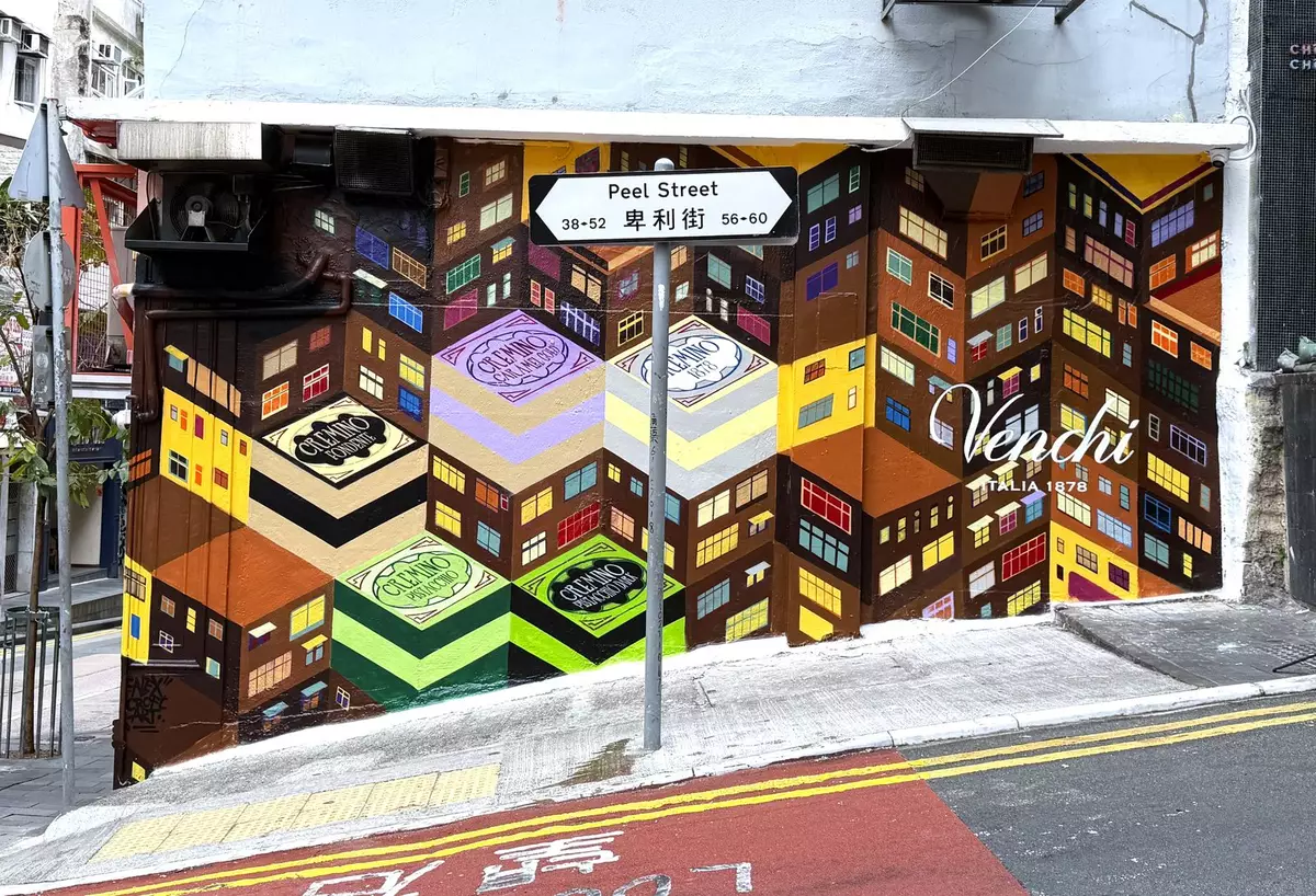 當巧克力化為色彩,將會擦出怎樣的藝術火花?「藝術三月」(Art March)是香港每年一度的藝術盛事,Art Basel、Art Central 等國際級大型藝術活動和展覽相繼登場,Venchi 乘着浪潮推出「The Cremino Trio - 視覺篇」,與炙手可熱的本地塗鴉藝術家 Alex Croft 聯手,為藝術熱浪注入一絲巧克力的濃醇。Alex 憑中環嘉咸街的九龍城寨舊唐樓主題壁畫風靡網絡世界,老香港的氛圍吸引全球遊客爭相打卡,這次他把充滿人文氣息的中環卑利街轉化為 Venchi 巧克力世界,以 Venchi 的經典巧克力配色糅合 Alex 個人色彩審美,加上其極具標誌性的超現實幾何鏤空風格,嶄新演繹 Cremino 系列的三重和諧之美。與此同時,銅鑼灣及尖沙咀的街道流淌着 Cremino 式藝術,精緻造型的三層巧克力郵筒將引起集郵打卡熱潮;同款設計的電車亦將遊走全港島,透過藝術色彩讓眼睛嚐盡 Cremino 巧克力的無限魅力。