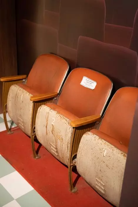 走進完美復刻的「中環戲院」,閃爍燈牌與紅絨布簾重現舊日戲院大堂的堂皇氣派,舊式戲院座椅、菲林電影放映機鏡頭、影片菲林罐及戲院手畫座位表等等勾起昔日回憶,牆身更展示了手繪風格電影海報,包括1981年《歡樂神仙窩》及1985年《恭喜發財》兩部經典賀歲片的海報,致敬港產片的流金歲月,港產片發燒友絕不能錯過!