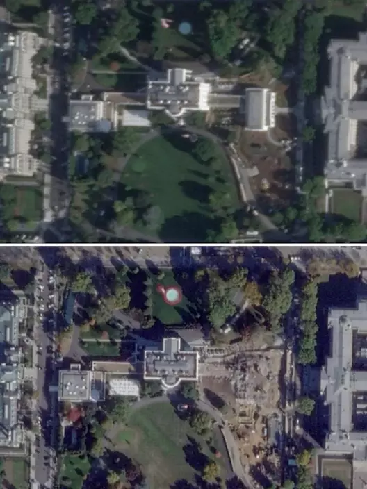 白宮9月26日(上)與10月23日(下)的衛星照片對比。