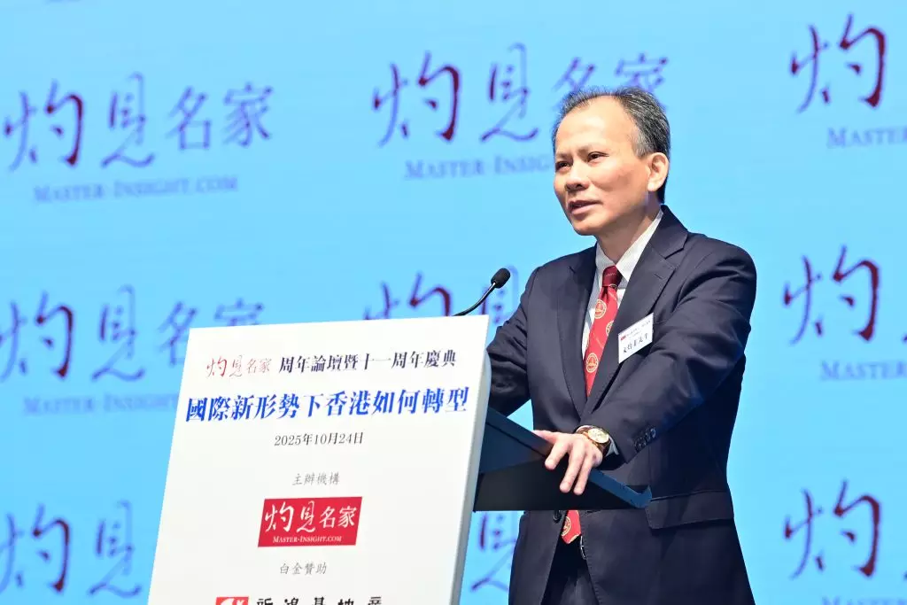 資深大律師、香港證監會前主席、中國證監會前首席顧問梁定邦擔任主禮嘉賓,並發表開幕主題演講:「香港作為國際金融中心的戰略創新」。梁表示,香港的國際金融中心地位主要面臨五方面挑戰,包括中美緊張關係、來自新加坡的競爭、迪拜金融業增長、結構性依賴和人才流失風險。我們要以11個支柱創新框架提升競爭力,同時增強應對地緣政治衝擊的韌性。