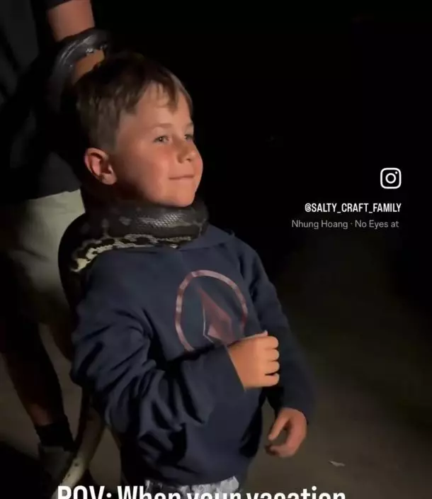 澳洲一名7歲男童夜遊動物園與蟒蛇互動慘遭咬頭滲血,母親意外拍下整個驚險過程。