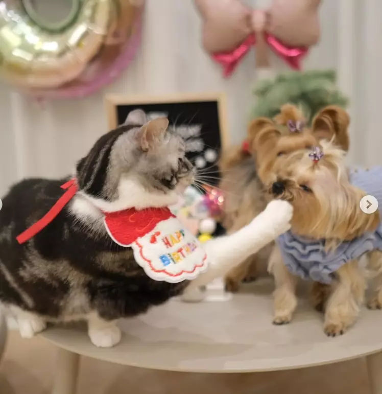 43歲的蔡卓妍(阿Sa)一向是熱愛小動物,不時在社交平台分享與愛貓和愛犬的日常點滴,近日她為愛貓「嚦咕」慶祝生日,並宣布家中多了兩隻小新成員!