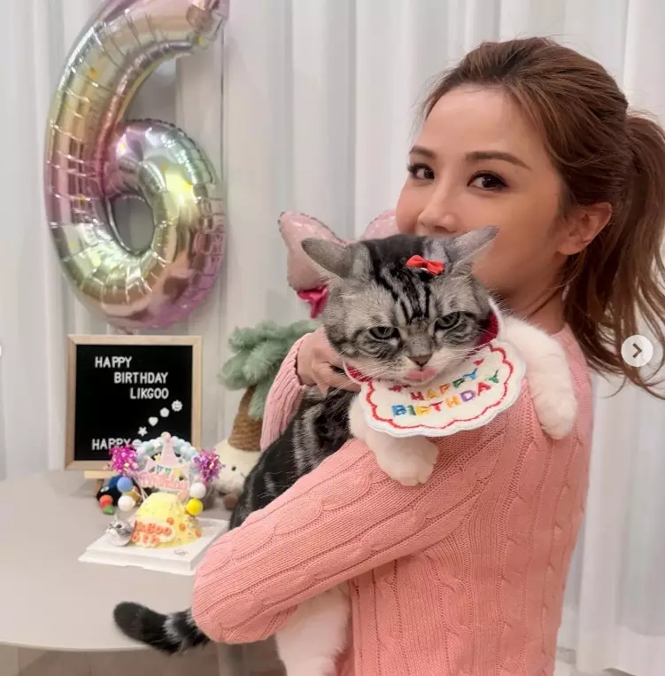 蔡卓妍在IG晒出為愛貓「嚦咕」在家舉行迷你生日會,以及兩隻小新成員的照,並留言:「嚦咕迷你生日會!今年多咗兩個新成員芝麻妹妹同阿Boo妹妹,今年個南瓜雞肉蛋糕嚦咕表示好滿意,張張相都食到舔舔脷,同阿媽一樣咁為食!#成屋老細s」。