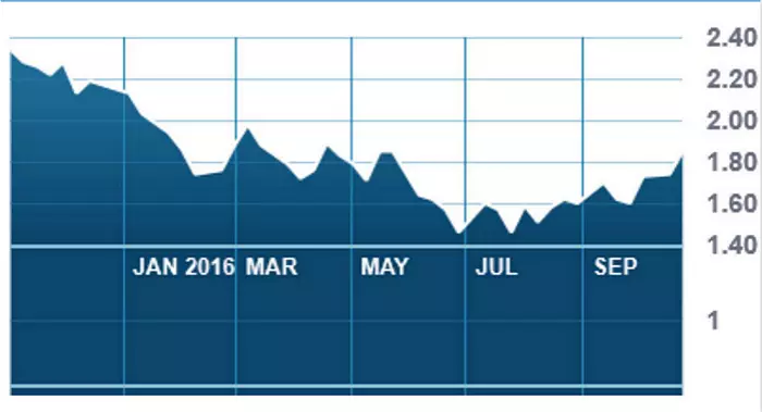 第二是房託。美國利息與美元在加息預期下同步上升,美國10年期 國債息在10月24日升上1.86厘高位,最近略有回落,目前是 1.81厘,看來美國債息這一浪較難升穿2厘的水平。債息升, 房託股價跌。我一直叫大家留意的越秀房產信託基金(405), 它現時已回到4.4元水平,比較理想的吸納價在4.2元左右, 不知道這一浪會試到這個低位?