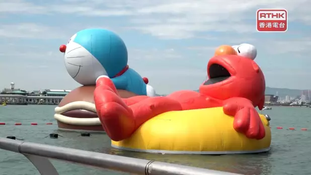 4個巨型充氣公仔包括多啦A夢、KAWS & 芝麻街(Elmo)、滑嘟嘟及LABUBU今日起在維港展出,並於下月1日舉行「海上大巡遊」。