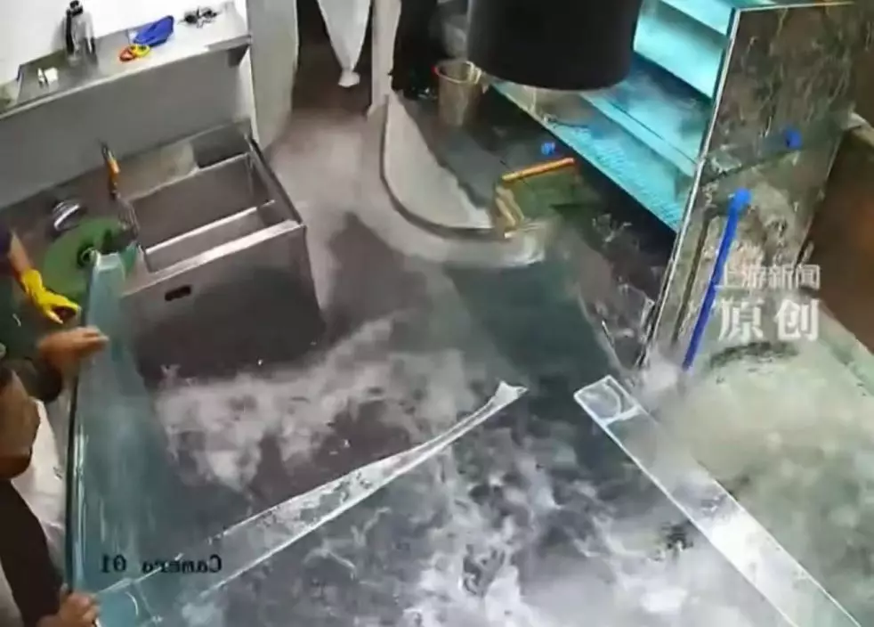 綜合內媒報導,福建福州市一間海鮮餐廳於10月17日發生一起離奇事件,餐廳內一個巨大魚缸突然發生爆裂,大量活魚瞬間傾瀉而出沖入用餐區,秒變臨時「水族館」,引發網民熱議。
