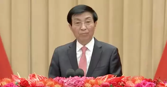 王滬寧發表講話。央視截圖
