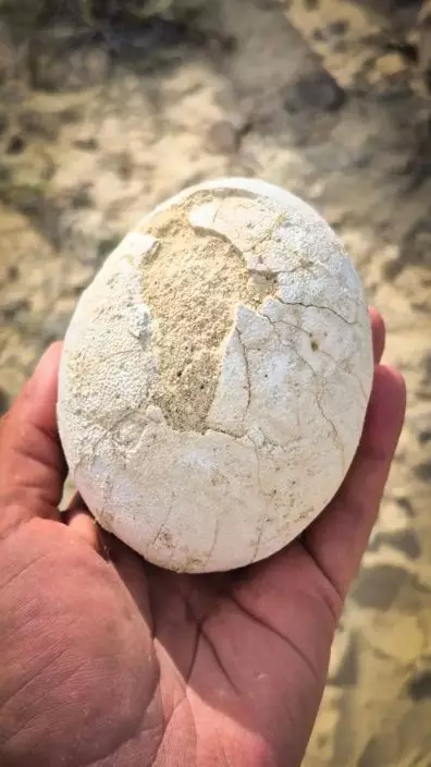 事後,阿根廷國家自然科學博物館旗下「比較解剖與脊椎動物演化實驗室」(Laboratory of Comparative Anatomy and Vertebrate Evolution)在社交平台Instagram發布影片,只見團隊領隊阿格諾林(Federico Agnolín)小心托起這顆恐龍蛋,蛋殼平滑亮麗,外觀與鴕鳥蛋相似。影片說明指出,「這很可能是南美洲首次發現這種恐龍的蛋!而且牠不是孤單一顆,我們發現的是一整個巢!」