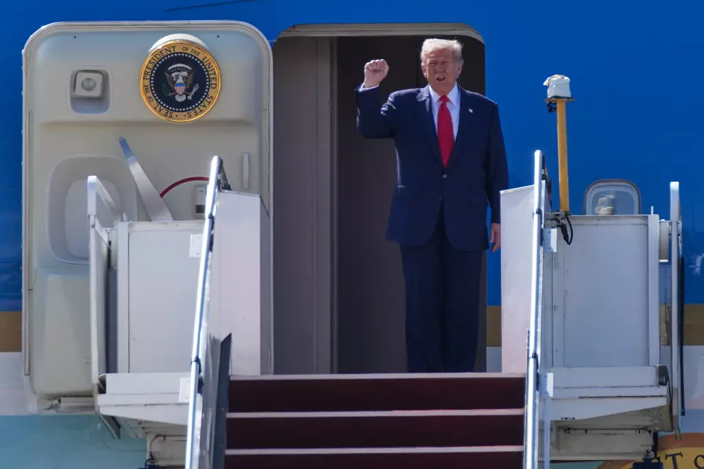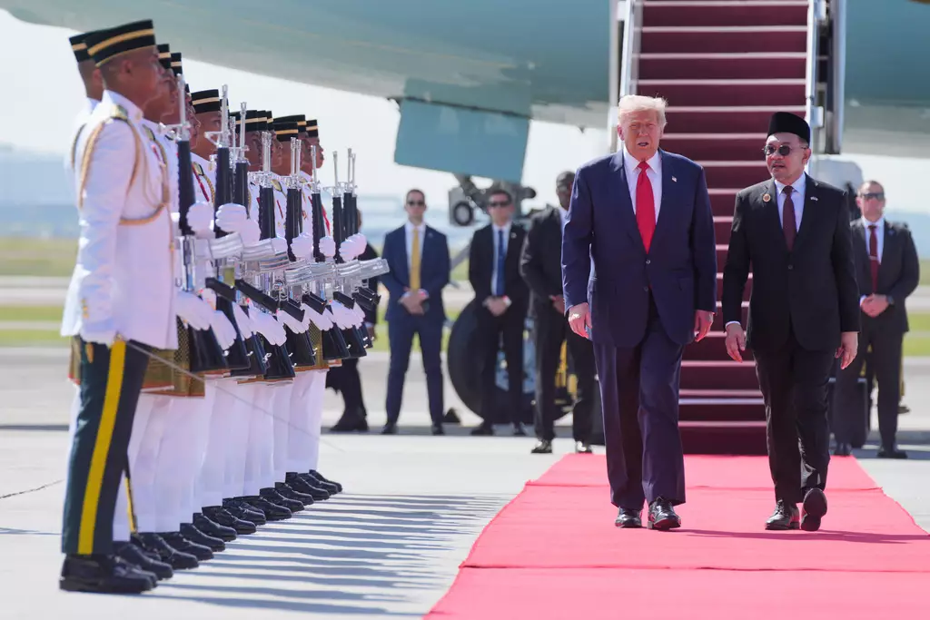 空軍一號降落後,特朗普步出機艙,馬來西亞總理安華在場迎接,特朗普與馬來西亞多名部長及其他政府高級官員握手。