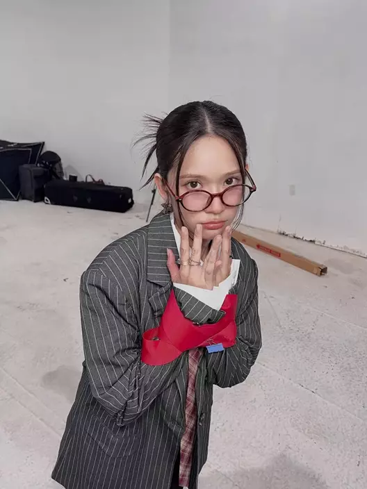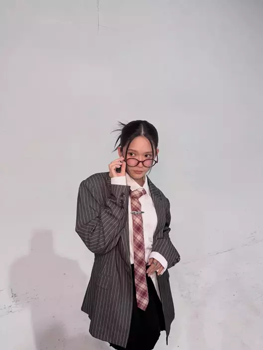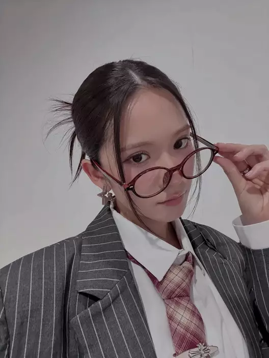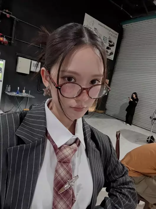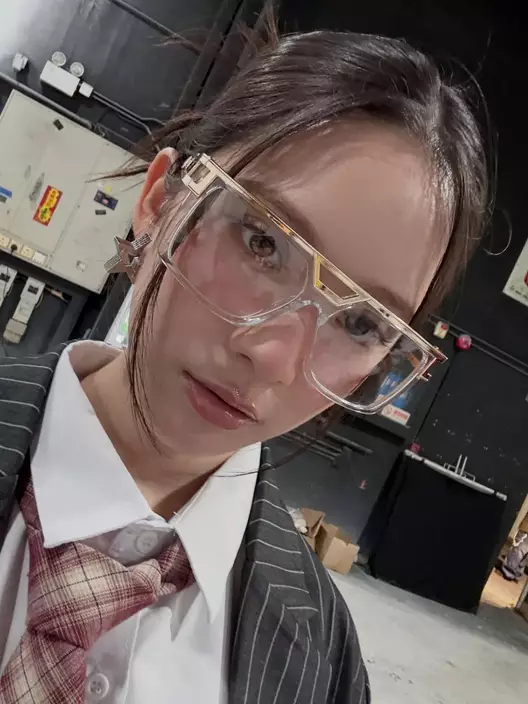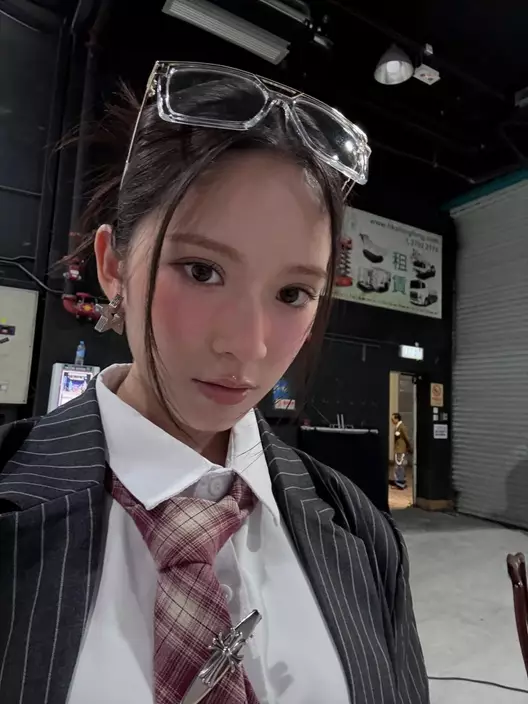 相中可見,雲浩影有兩個造型,首先是西裝Look搭配黑色Lace絲襪,成熟得來帶點性感,她又配上兩副不同的眼鏡,一副是啡色大鏡框,另一副則是充滿未來感的透明鏡框眼鏡,並問網民:「邊副眼鏡好啲?」而另一套則是毛毛Y2K Look,她以雙馬尾上陣,對着鏡頭不停伸脷、嘟嘴又舉V,相當可愛!