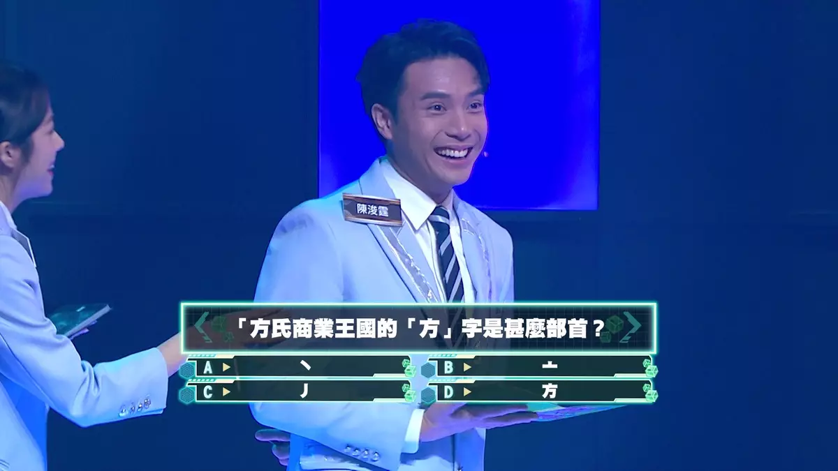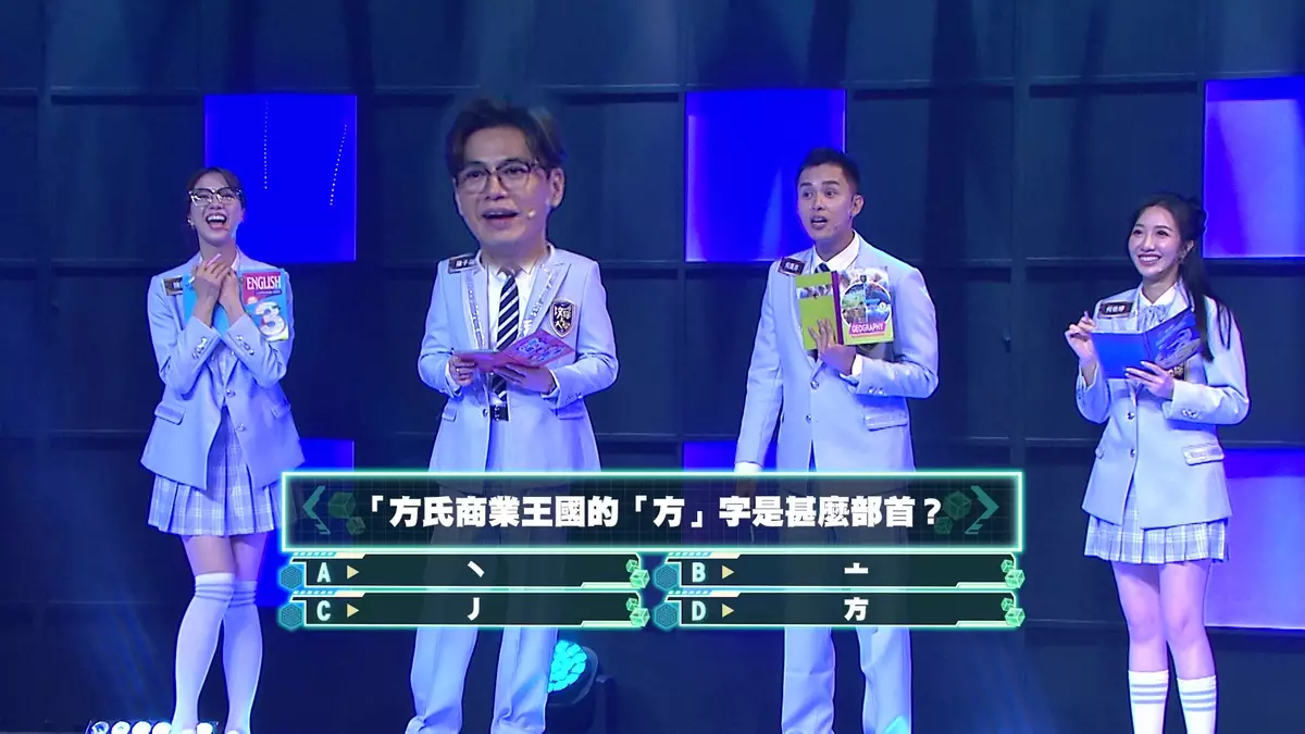 第一集的內容包括了小學及部分中學的答題部分,令人驚艷的是,第一題的「小學一年級中文題」、已考起方氏一家,題目:「方氏商業王國嘅『方』字係咩部首?」,陳浚霆更因為讀錯其中一個答案部首的發音而被封「陳浚J」。比賽初段,三大領先的參賽者竟巧合地是三位前港姐冠軍陳庭欣、陳曉華及莊子璇,令阿Bob不禁讚嘆果然「美貌與智慧」並重!