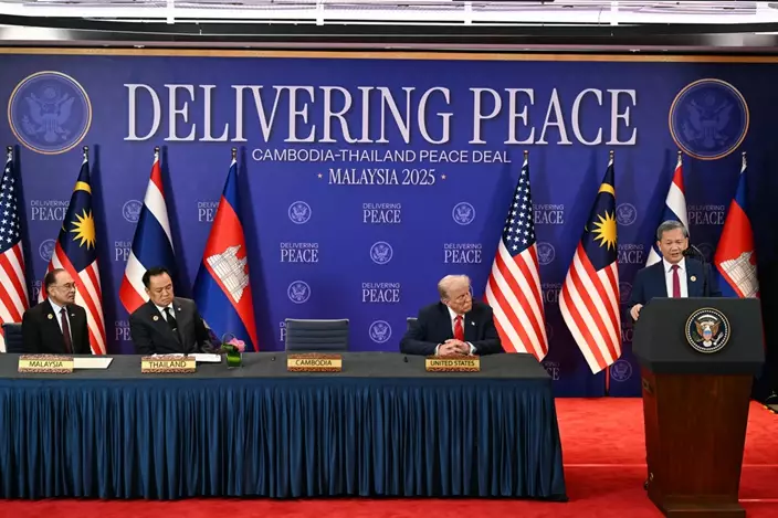 泰柬就邊界和平於吉隆坡簽署聯合聲明 特朗普見證。圖片來源:AP
