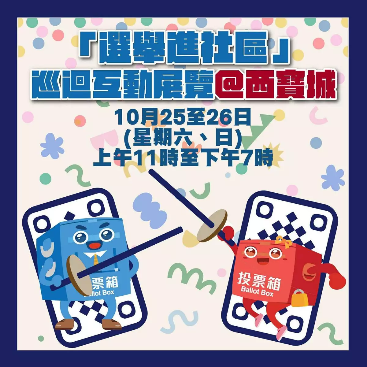 政務司司長陳國基聯同政制及內地事務局局長曾國衞、民政及青年事務局局長麥美娟,出席位於西環西寶城的「選舉進社區」巡迴互動展覽首站活動。