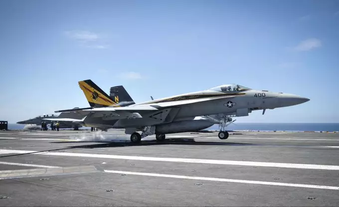 半小時後,另一架隸屬第22戰鬥機攻擊中隊的超級大黃蜂戰鬥機,亦墜入南海海域。圖非涉事戰鬥機。微博圖片