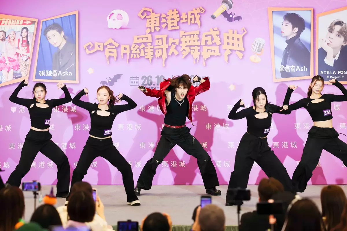 萬聖節將至,將軍澳東港城昨日(10月26日)舉行「哈囉歌舞盛典」,有跳唱星級嘉賓張馳豪(Aska) 、盧信宥(Ash) 、XiX(Charlotte /Crystal/Caitlin)﹑及Atilla Fong方玉亨@Project 7聯同4位練習生一起表演。表演舞團星及舞團IDream Crew@DCKIDZ聯同充滿活力的參賽舞團9nymph ﹑PIXEL HK﹑I AM ﹑Delighted official﹑Bloom﹑Whynot,一齊大跳K-Pop舞蹈high爆全場!