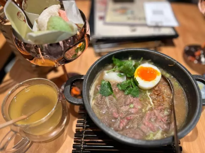 擁有20年餐飲經驗的林惠惠,過去主力經營火鍋生意。她說:「我媽媽早年從印尼帶回牛骨湯配方,我加以改良,選用安格斯牛肉搭配本地牛骨,讓湯頭更鮮美。」她特別推介招牌菜「鵝肝煎蛋撈飯」,笑言這是以前的隱藏菜式,深受歡迎。