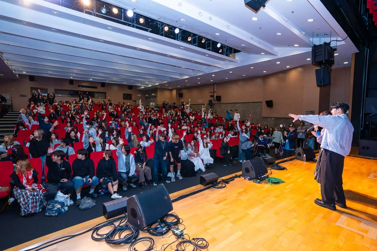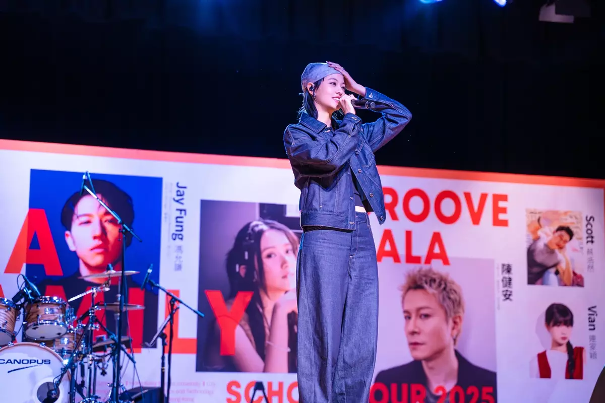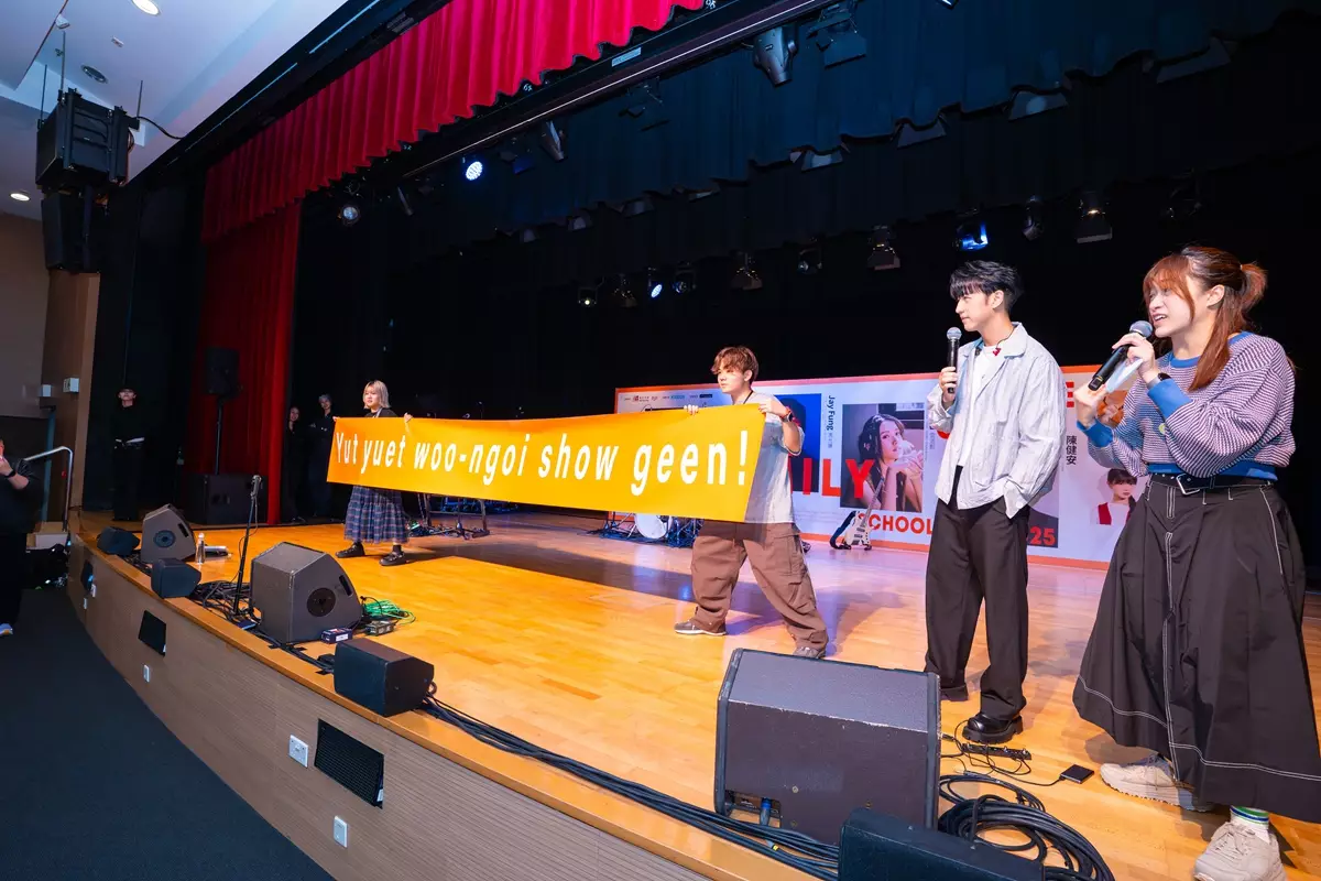 「唱作王子」馮允謙(Jay)日前在「Groove Gala MA Family School Tour」第六場,尾站香港浸會大學(HKBU)台上,以其專屬「Jay星文」與同學仔玩解密遊戲,拉開印上「Yut yuet woo-ngoi show geen」字樣的橫額,台下同學仔秒懂,踴躍舉手搶答「一月戶外show見」,原來Jay宣布開騷好消息,全場歡呼。