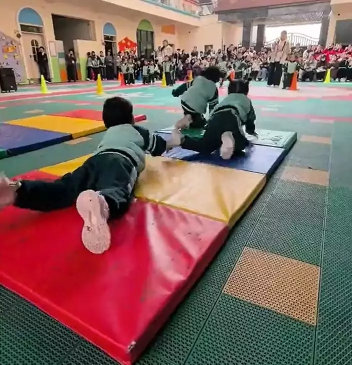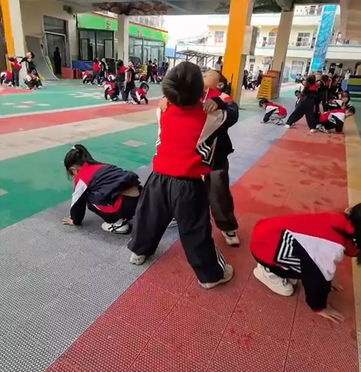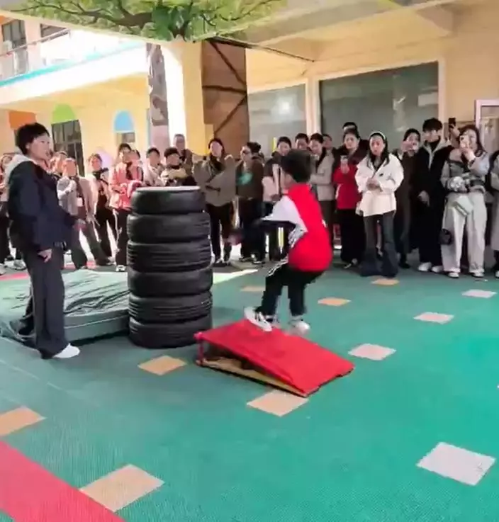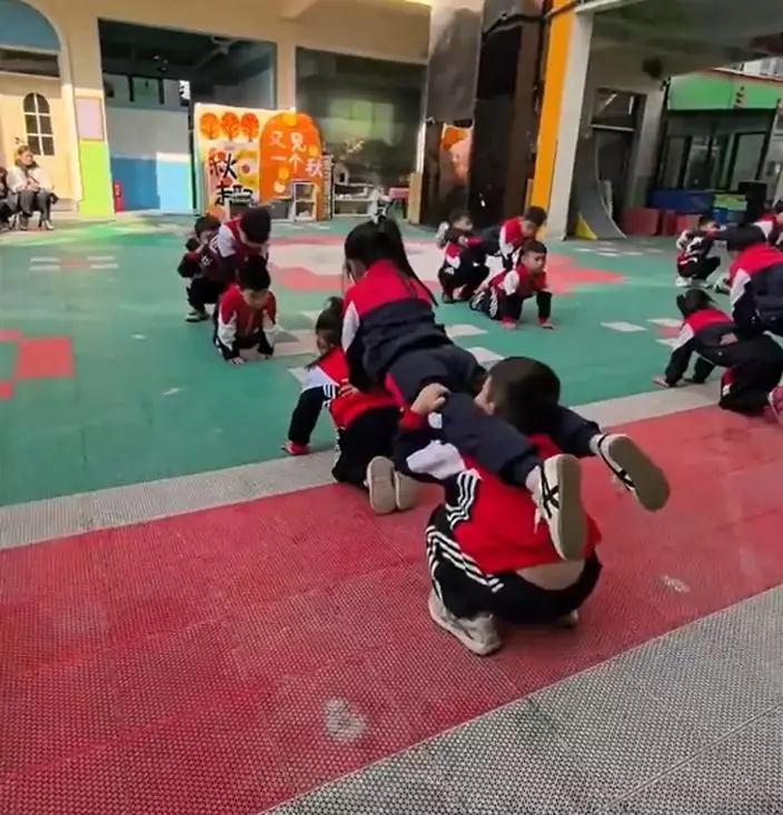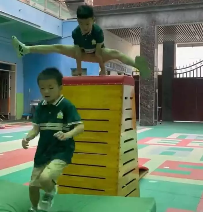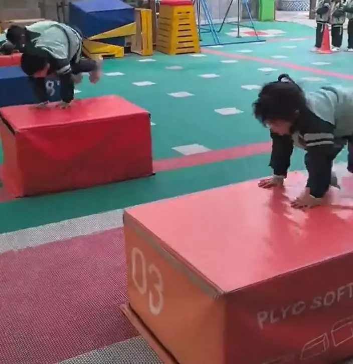 從曝光的影片可見,幼稚園內的小朋友均接受「硬核」的運動訓練,包括每日進行獨木橋快跑、跳箱連續跨越、單槓旋轉等高強度訓練。