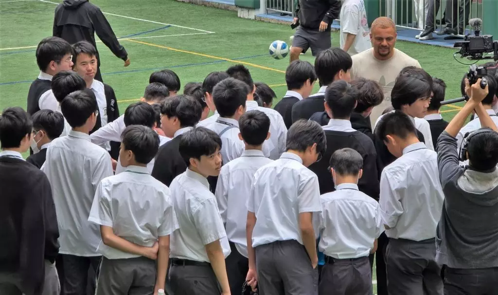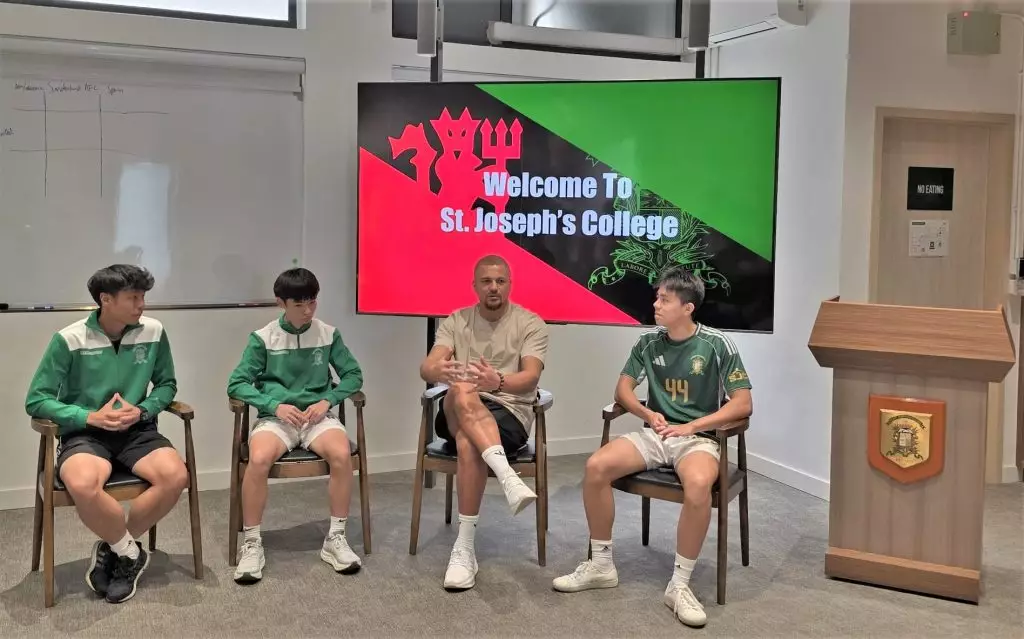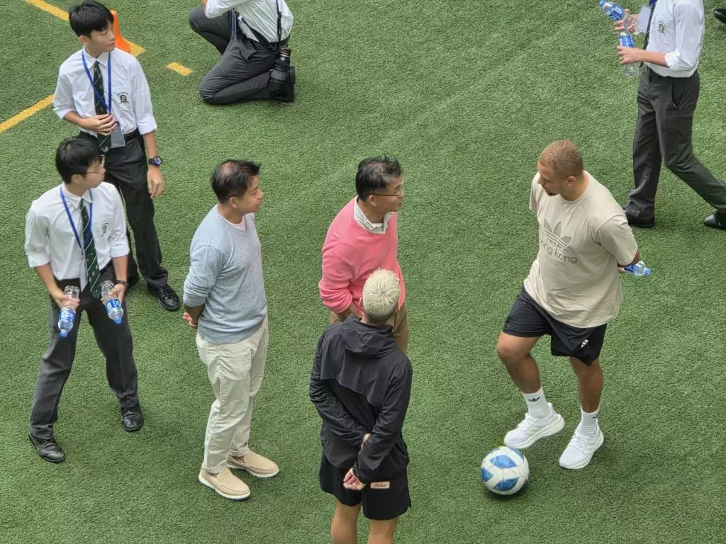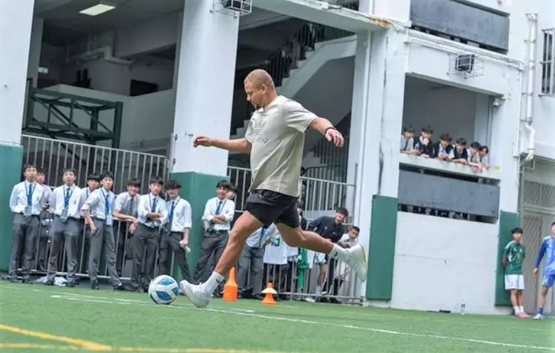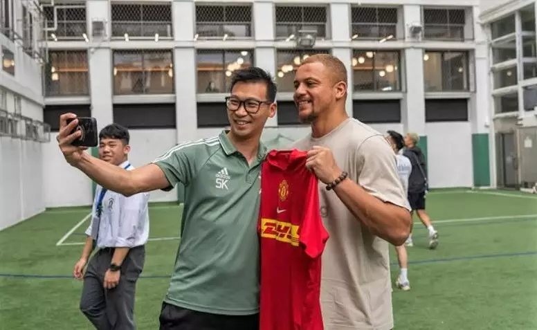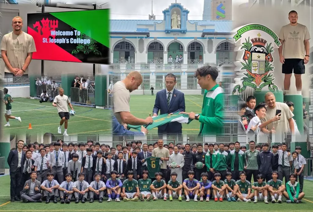 當曼聯昔日鐵衛韋斯布朗(Wes Brown)踏進聖若瑟書院(SJC)的校園時,時間彷彿倒流,足球的熱情在這座百年學府中猛然燃起。這位曾在英超叱吒風雲的中堅,身高六呎一吋,氣場十足,卻毫無架子,與學生們親切互動,簽名、合照來者不拒,彷彿他不是來自奧脫福球場的名宿,而是大家的老朋友。