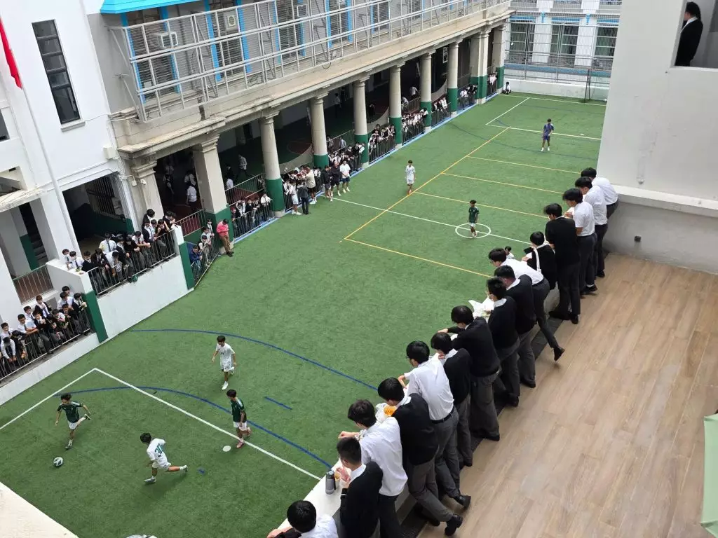 訓練後進入比賽環節,球隊分為綠白兩隊,在球場展開激戰。場地雖小,技術要求卻高,球員們全力以赴,攻守互換,令場邊觀眾看得著迷。布朗不僅場邊指導,更與球迷合照、簽名,展現親民一面。賽後,校方安排大合照,有學生即席穿上剛獲簽名的曼聯球衣,場面熱鬧非常。校長郭迪民與校監陳國強修士亦邀請布朗在SJC足球及球衣上簽名,為布朗此行留下珍貴紀念。