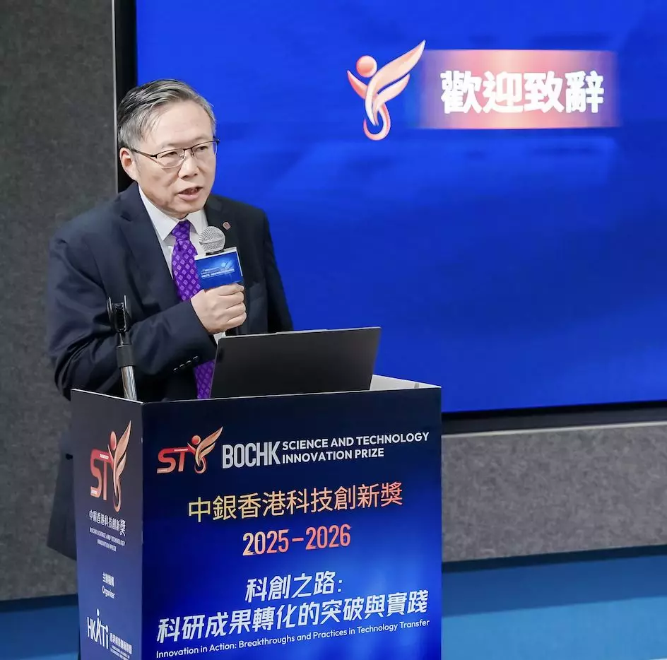 香港科技創新聯盟主席、香港理工大學校長滕錦光教授表示:「衷心感謝中銀香港長期以來對本港創科發展的大力支持。本獎項聚焦香港科研人員,旨在認可並鼓勵他們投身對香港發展具影響力的科研領域。近年來,香港正積極建設國際創科中心,社會各界亦日益重視科研成果轉化,讓具應用價值的技術與產品真正落地。相信今日的分享,能進一步推動社會各界探討大學科研如何對接社會需求,帶動香港創科產業發展。在此,本人謹代表香港科技創新聯盟,宣布第四屆『中銀香港科技創新獎』正式啟動。」