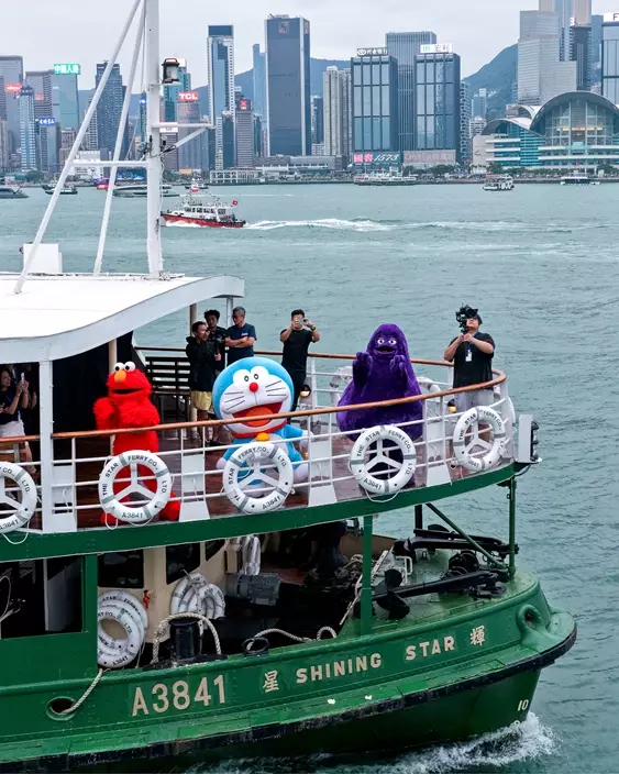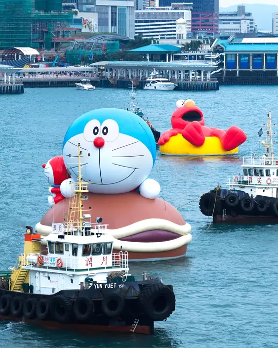 多啦 A 夢、KAWS & 芝麻街(Elmo)、滑嘟嘟及 LABUBU 四座巨型海上充氣雕塑展示 8 日以來,已吸引成千上萬市民旅客前來駐足觀賞打卡,星期六更組成「夢幻艦隊」,於下午 2 時正式啟航,依次駛離金鐘添馬公園對開海域,巡遊維港兩岸兩圈,歷時逾三小時,為香港獻上一場前所未見的海上藝術盛典。