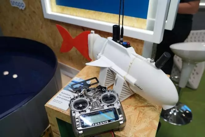 SNAPP Ocean Data Solutions Limited 展出其研發的「SNAPP」,依托機械魚技術、人工智能及物聯網解決方案,用於監測海洋生態,並蒐集海洋魚類和珊瑚生態數據。這款機械魚配備底部攝影鏡頭,可在三至五米範圍內拍攝海底環境與海洋生物。這種非侵入性調查方式,既能有效蒐集與記錄海洋數據,同時避免破壞生態環境或干擾海洋生物。