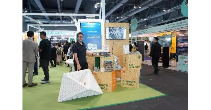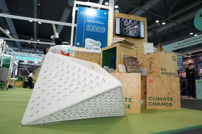 afterNATURE Limited 展出其研發的「多邊形防波組件」,可安裝於海堤,為牡蠣、海螺、石鱉等海洋生物提供棲息之所,以此增加生物多樣性並協助降低海岸溫度。