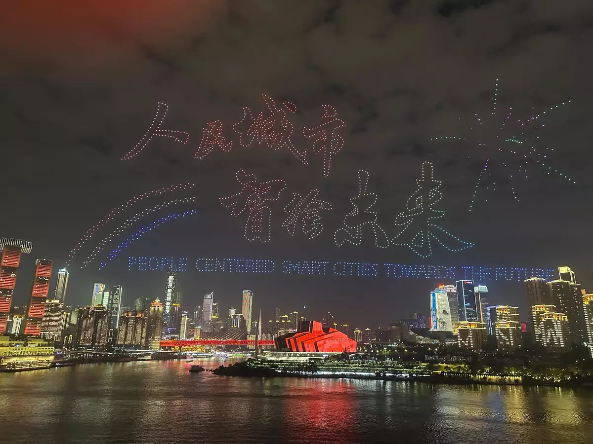 十月二十七日,在重慶舉行的「新韻重慶」無人機燈光秀展演,展示2025年世界城市日中國主場活動的主題——「人民城市 智繪未來」。政府新聞處