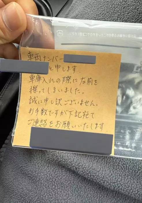 日本一名車主出門發現愛車被擦撞,見肇事者留誠懇「道歉信」怒氣全消,笑言:像收到一封「情書」。