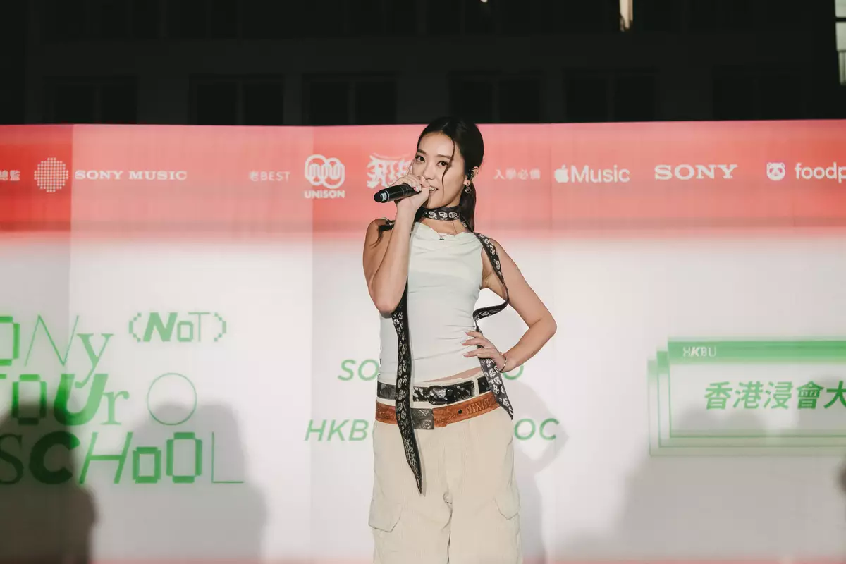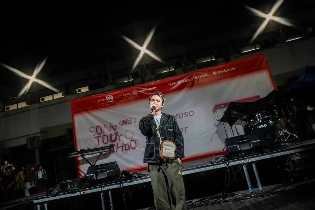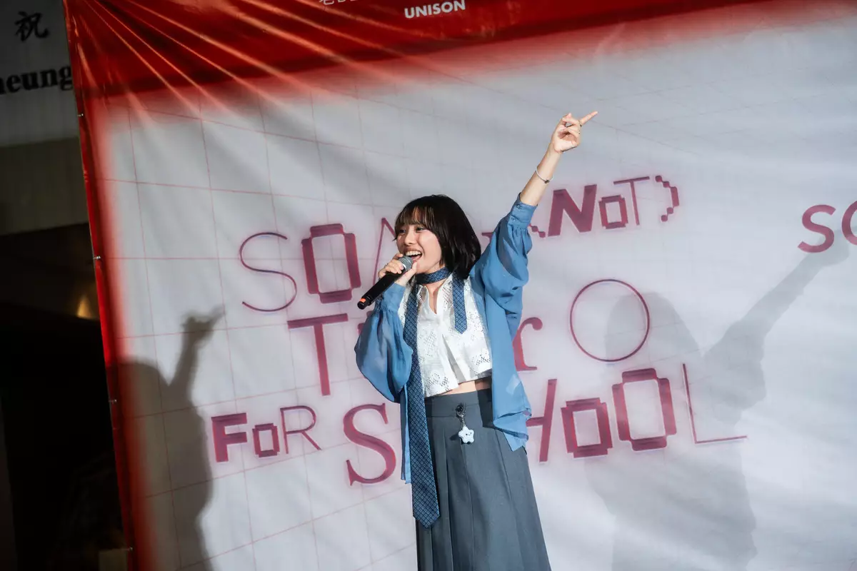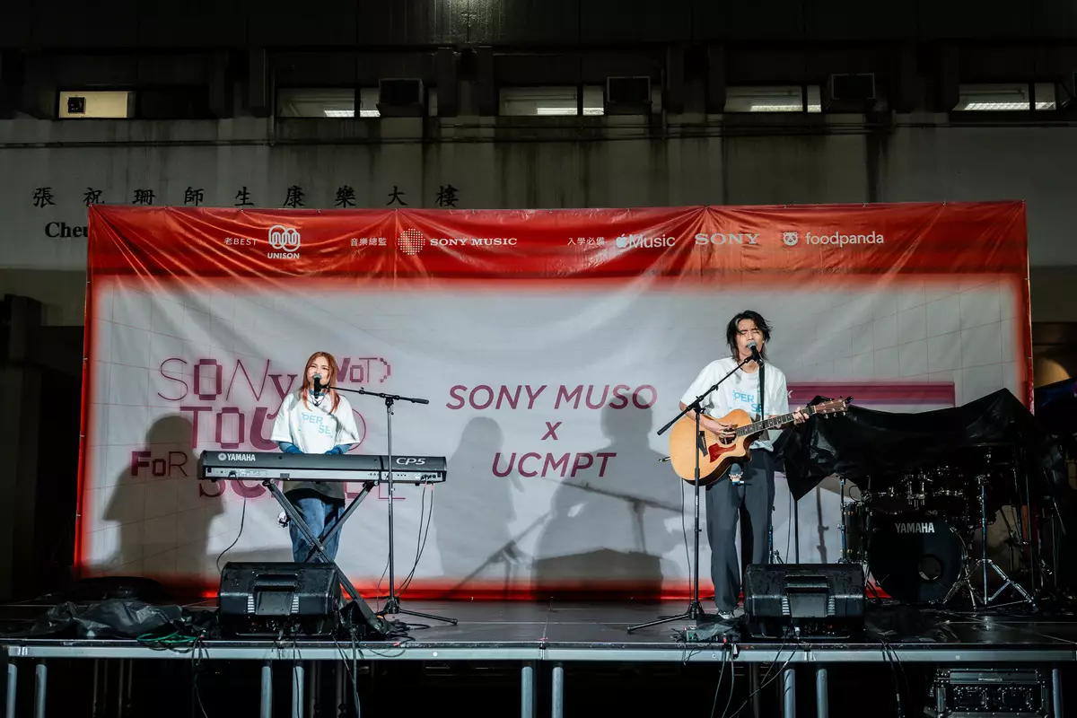 今年Sony Music亦大搞新意思,每站School Tour邀請不同歌手以「莊友」身份擔任嘉賓。例如早前於浸會大學及城市大學兩站就有JACE陳凱詠;而Beanies於樹仁大學則聯乘Sony Music歌手合唱。尾站中文大學邀請到The Hertz及蘇詠淳(Vincy)加入,The Hertz於理工大學首站時與Michael C合唱《泡泡》,用「Band Sound」震懾全場;這次夥拍力臻演繹《千世書》,帶來全新感覺。力臻及Vincy —— 兩位早前於日本「THE FIRST TAKE」亮相的歌手分別將「THE FIRST TAKE」演繹的作品《2882點85✈》及《Sora》帶來中大,展現實力。