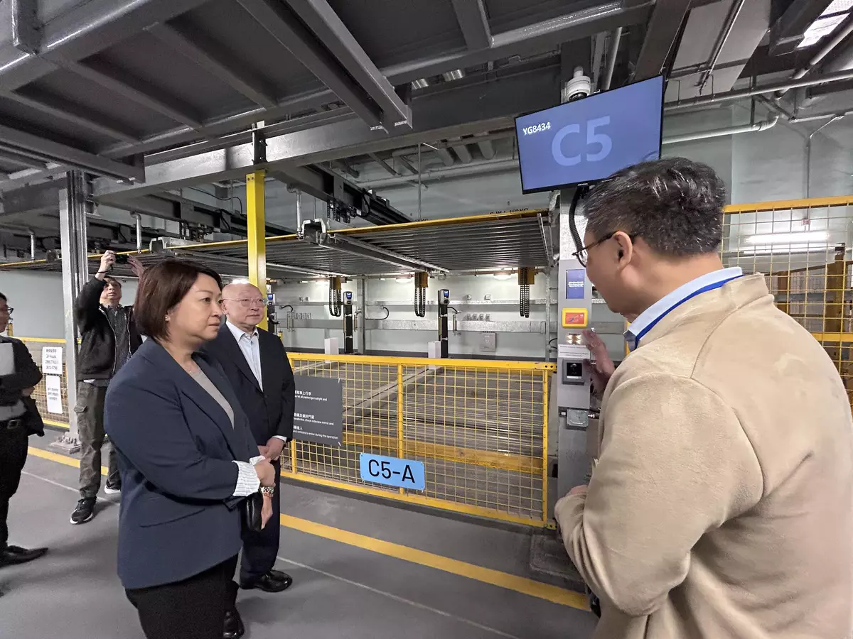 運輸署署長李頌恩和政府產業署署長馮建業早前到場視察,了解項目特色和便利措施。運輸署在社交網頁表示,拼圖型系統是通過載車板垂直升降、左右橫移,移動車輛存取,結構相對簡單,營運成本較低,善用科技提升泊車密度,在拼圖型低層泊位亦安裝充電設施,便利電動車司機。