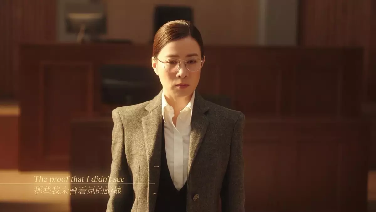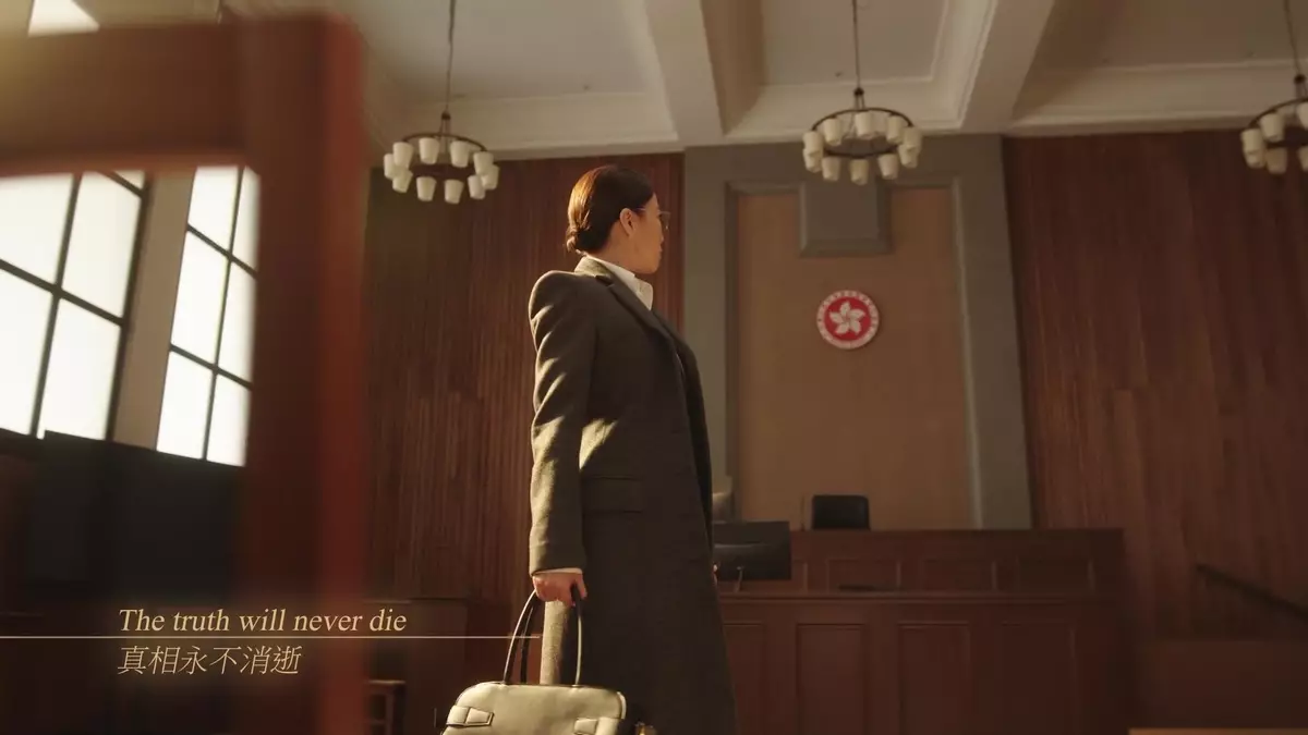 在悠揚漸轉激昂的BGM下,盤了髮髻、駕著金絲眼鏡的佘詩曼,身穿修腰剪裁的西裝長褸,緩緩步進法庭。雖然阿佘在1分鐘的宣傳片中全程未有說過半句對白,但從她莊嚴沉穩兼備的神情,配以「正義也許會遲到,但絕不會缺席」+「真相永不消逝」的歌詞,以及刻意打造的曙光效果,估計是一套溫暖人心的作品。