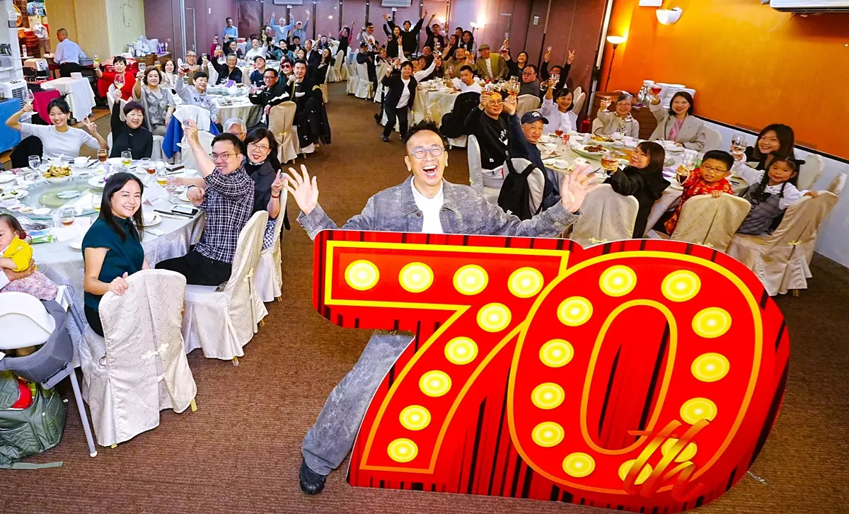 席間,旦哥更邀得YT到台上作出答謝,更獲對方送上贈言,YT笑言:「我好高興喺我人生嘅路途上面,遇到呢一位咁戇直嘅青年,咁多年佢不忘初心,咁多年佢都係我認識嗰個充滿熱情嘅小伙子,係好難得㗎,如果冇沙律(鄭丹瑞太太)堅如磐石咁喺佢後面支撐住佢,佢點會能夠活到70歲都仲咁倜儻?」而眼泛淚光的旦哥感性回應:「我而家回想返每樣嘅嘢,就係袋錢落我袋,呢一位(俞琤)係我人生最重要嘅人生導師,所以當YT一口應承咗幫我寫新書入面嘅序,我發覺佢係最重要嘅一個。」二人感性分享讓壽宴添上一份感動。