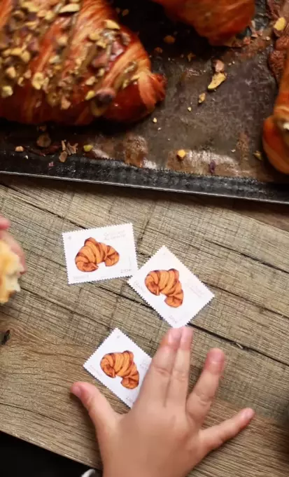 法國郵政推出特別版郵票,摩擦時會釋放出牛角包的香氣,希望藉此凝聚全國人民的情感。