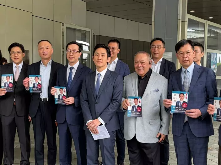 莊家彬在現任立法會議員霍啟剛、前議員石禮謙等陪同下報名。巴士的報記者攝