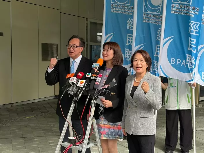 經民聯的鄧銘心在現任經民聯立法會議員盧偉國及梁美芬等人陪同下報名。巴士的報記者攝
