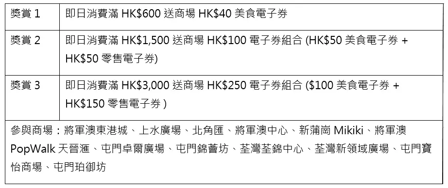 「Sport Fever 運動狂熱」大激賞,於新地十二大商場消費滿指定金額,即送近HK$400美食及購物禮遇。