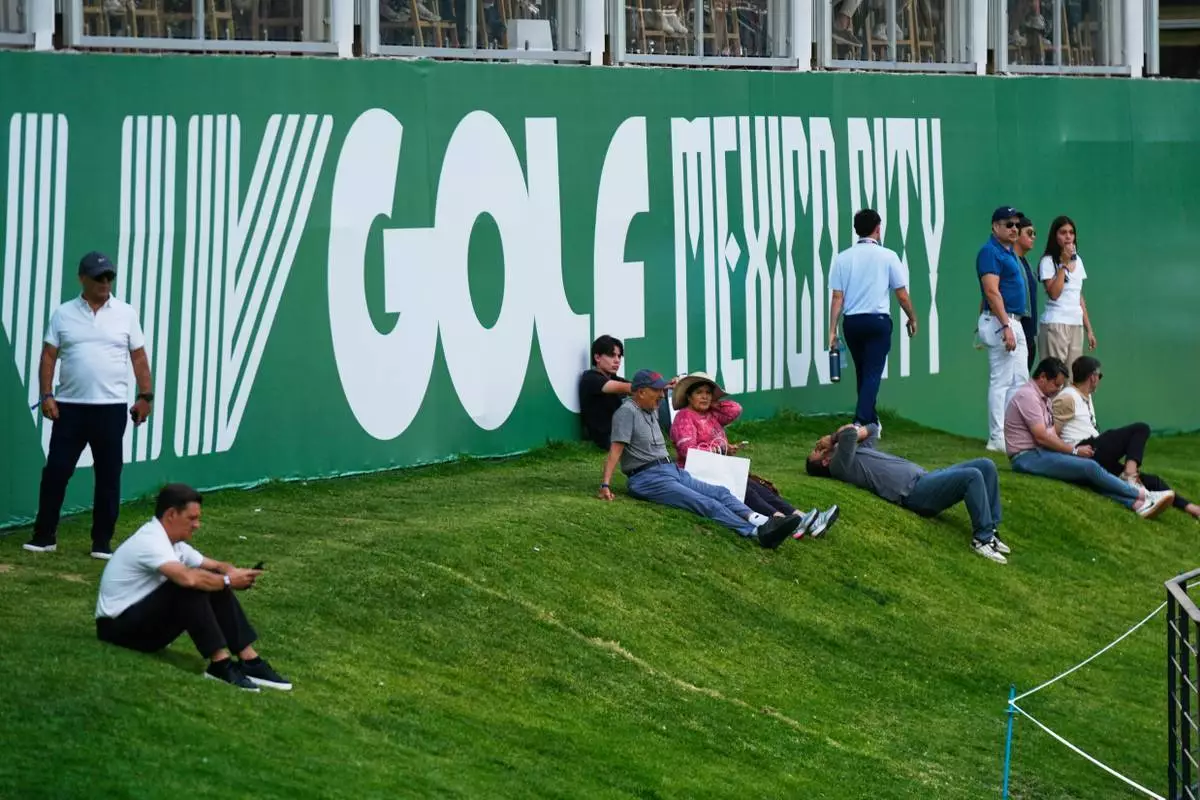 2026年4月16日周四,球迷在墨西哥城舉行的LIV高爾夫(LIV Golf)錦標賽首輪比賽中,在第18洞等待球員。(美聯社圖片/Fernando Llano) AP圖片