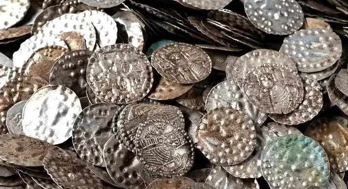 照片可見,銅鍋中堆滿各式古銀幣與珠寶,部分造工精緻且圖案罕見,其中一些銀幣鑄有12世紀瑞典國王克努特・艾里克松(Knut Eriksson)之名,也有來自哥特蘭島、刻有教堂圖樣的幣種以及描繪主教持牧杖的「主教幣」,此類幣多為中世紀歐洲教會委託鑄造,歷史價值極高。