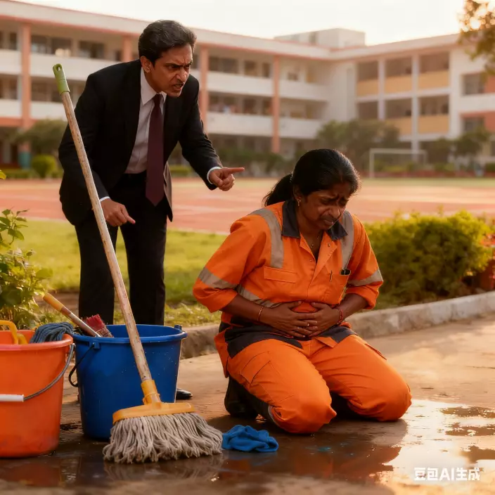 女清潔工因經期遲到遭男主管迫除衫查證還拍照「存證」。AI生成圖片
