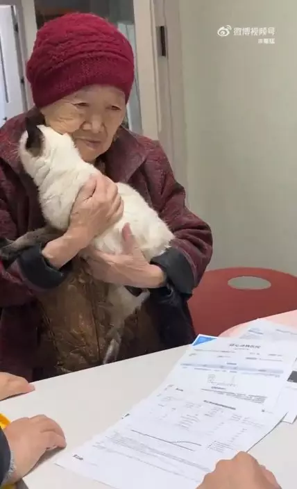 8旬老婦年事已高仍堅持親自抱著20歲失明愛貓前往獸醫院求醫。影片截圖