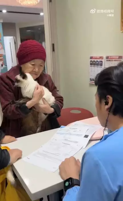 老婦步履蹣跚帶寵物貓求醫