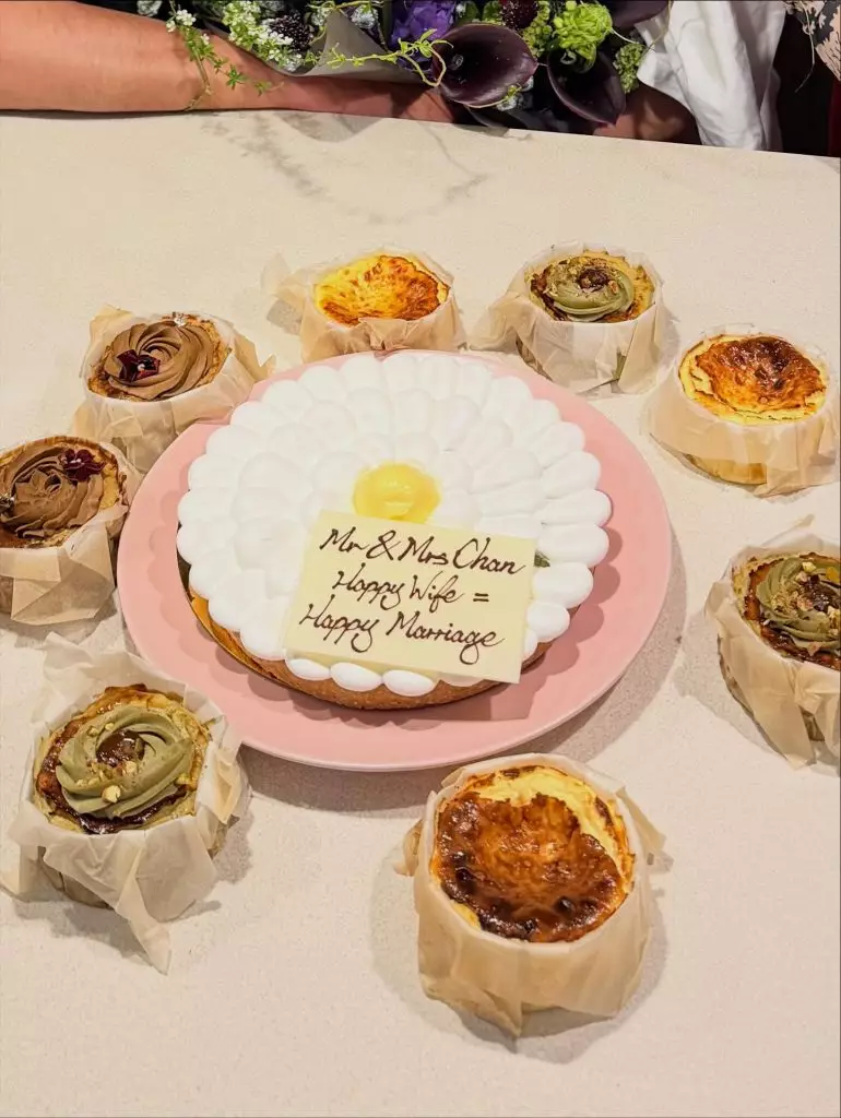 聚會中亦見陳山聰夫婦、單立文與胡蓓蔚、袁偉豪與懷孕妻子張寶兒等好友。胡定欣笑指:「呢班兄弟姊妹太了解我...陳山聰生日又話嚟唔到,Uncle Ben的Message又唔覆,一定係有啲嘢,係呀!咪就係岀嫁囉,終於可以同你哋分享啦﹗多謝大家體諒我如此口密﹗」