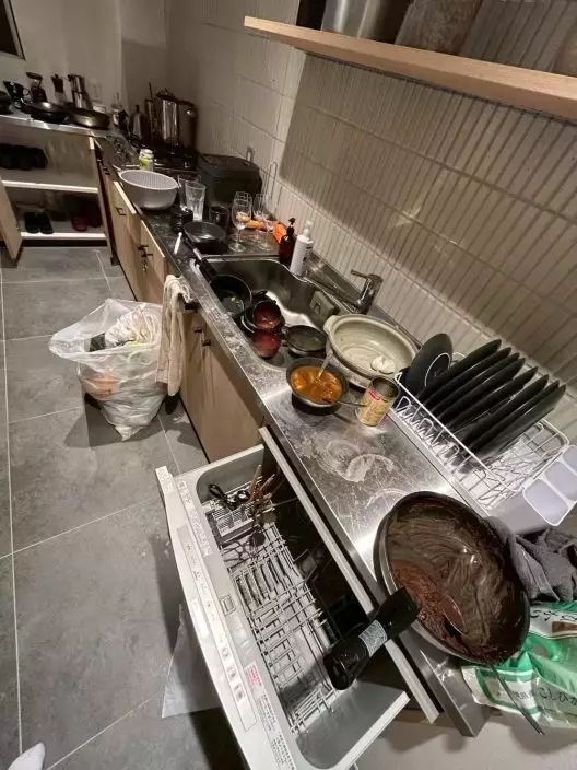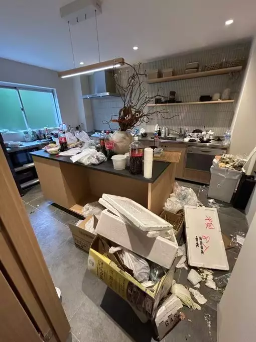 照片可見,屋內堆滿大量飲料樽、外賣盒及剩菜剩飯,廚房也堆著未清洗的鍋具與餐盤,客廳散落著多袋垃圾。鈴木形容這是自己遇過「史上最糟糕」的一次退房情況,怒斥部分旅客毫無公德心。