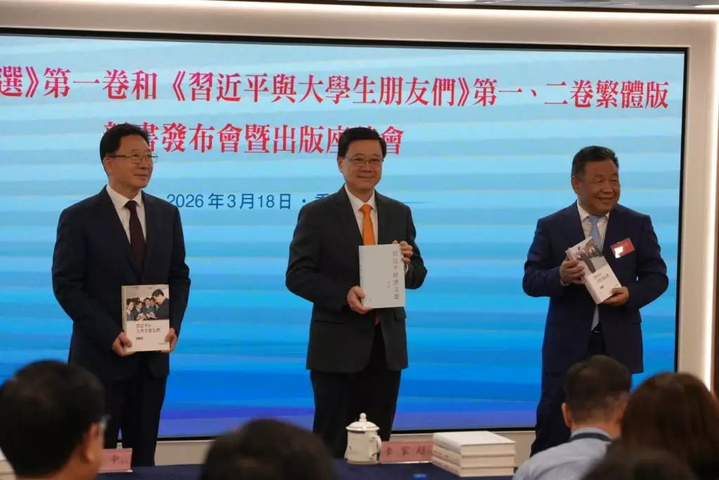 《習近平經濟文選》第一卷和《習近平與大學生朋友們》第一、二卷的繁體版,近日由聯合出版集團出版發行。3月18日,三部圖書繁體版的新書發布會暨出版座談會在香港舉辦,行政長官李家超、中央政府駐港聯絡辦主任周霽、紫荊文化集團董事長許正中等出席。